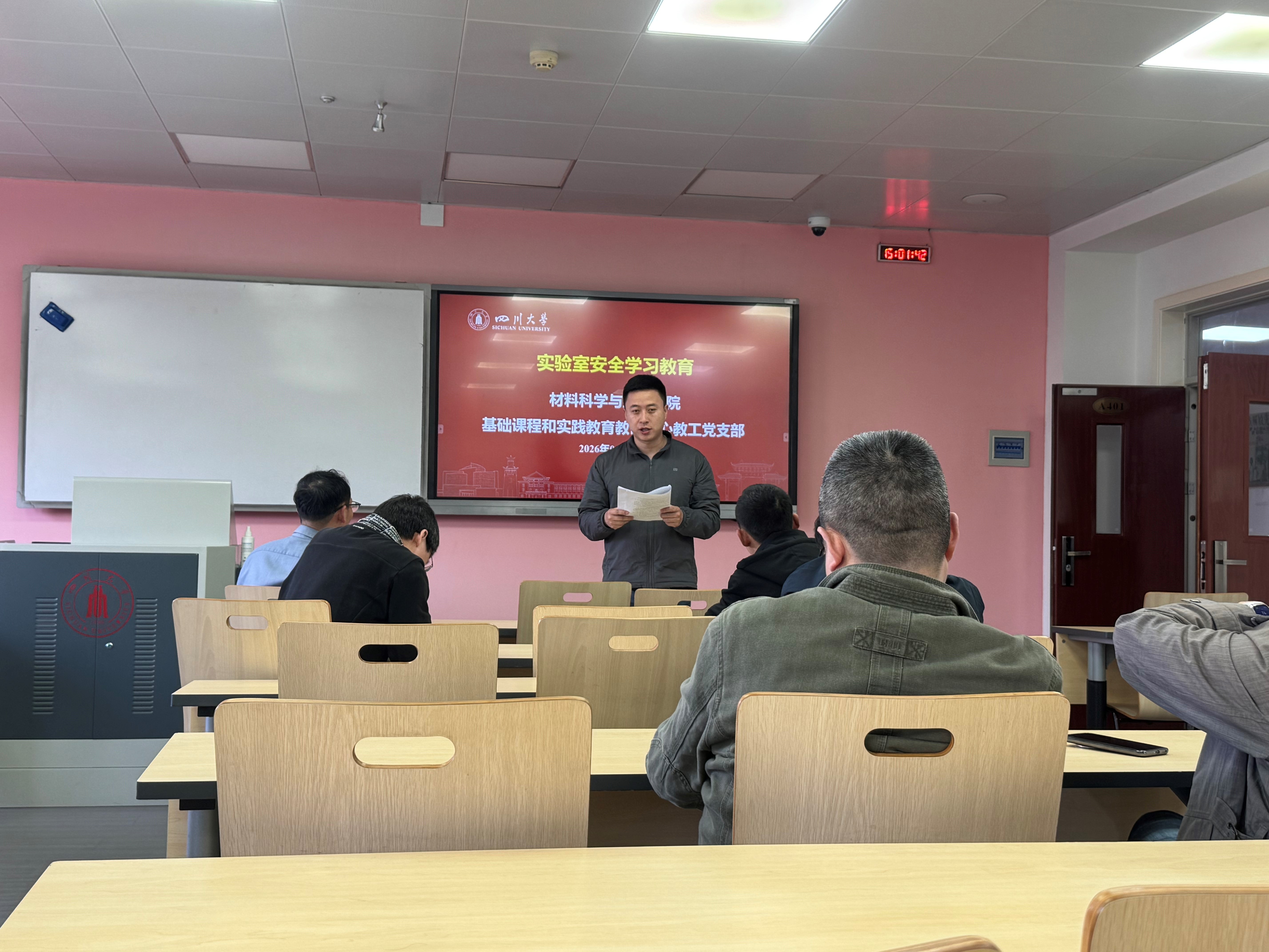 随后,杨磊老师组织集体学习了《高等学校实验室安全规范》,明确了实验室安全责任体系和实验室安全管理制度,强调了每位教师都是实验室安全的第一道防线,必须将安全意识融入日常教学科研全过程,并进一步强化学生的自我防护能力与责任担当。后续,基础课程和实践教研中心将持续完善安全制度,强化监督检查,确保各项安全规范落到实处,为教学科研工作平稳有序开展提供坚实保障。